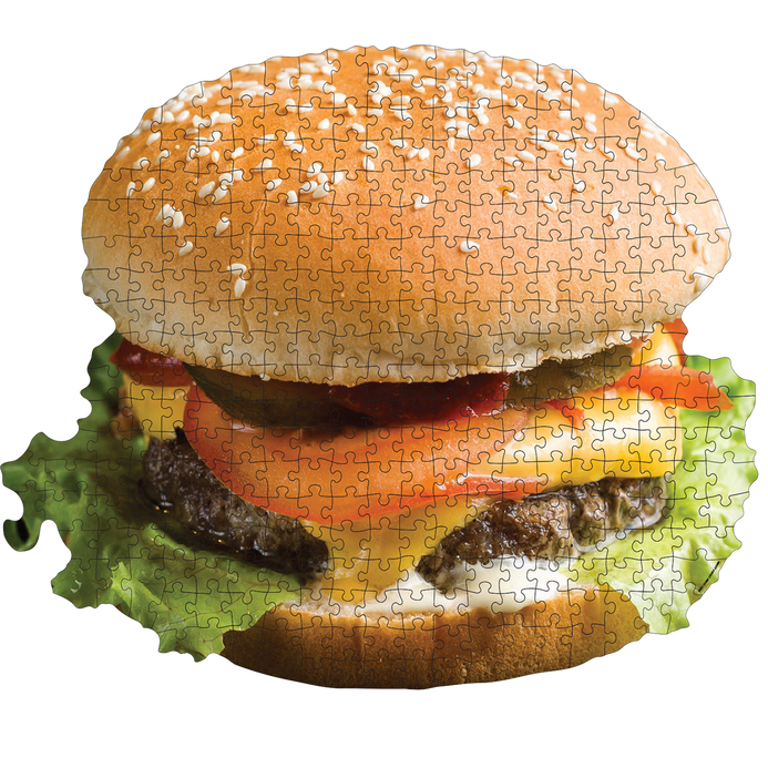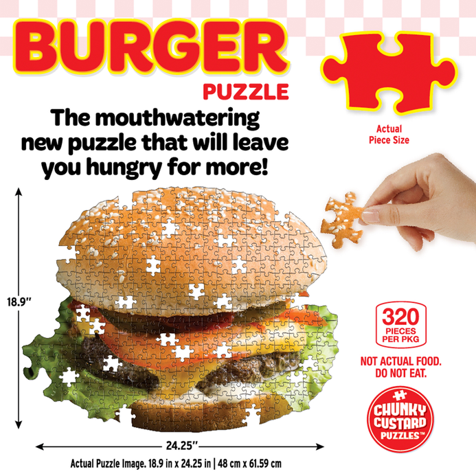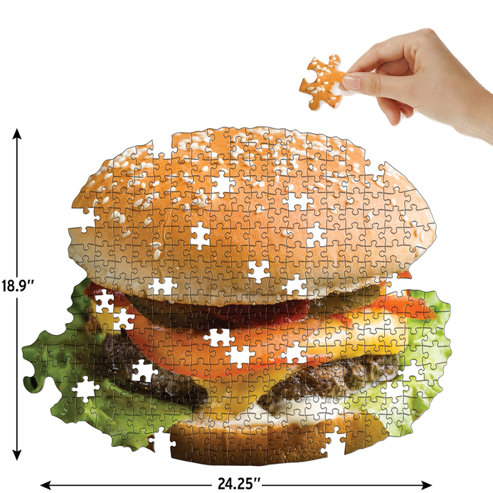 - TOO MUCH FAST FOOD: These puzzles take-away that hungry feeling! The perfect night-in includes this oversize specially die-cut Burger Puzzle. It looks simple to make, but it's deceptively challenging. Zero heartburn and 100% satisfying. Puzzling never felt so good. YUM!