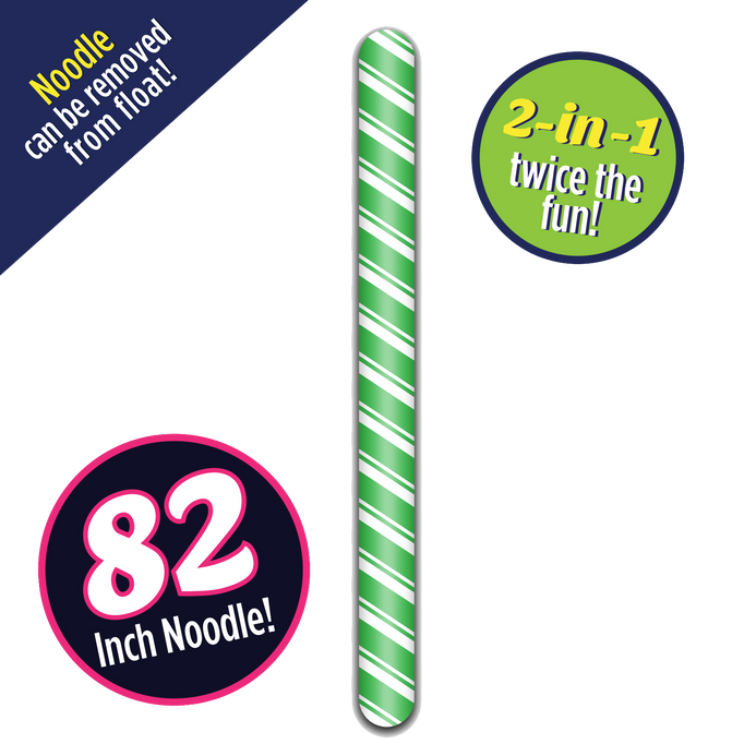 - Pull out the center striped straw for a separate inflatable 82”h noodle. Noodle slides in and out of center chamber of float.