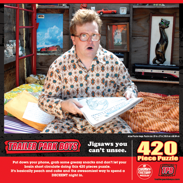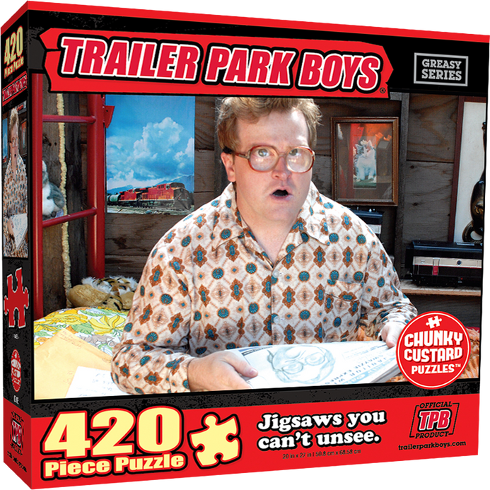 Trailer Park Boys Official 420-piece puzzle. Jigsaws you can't unsee! Greasy Series! Thrill and challenge your family and friends by piecing together this interactive puzzle toy. Bring home hours of entertaining playtime and create fond memories!