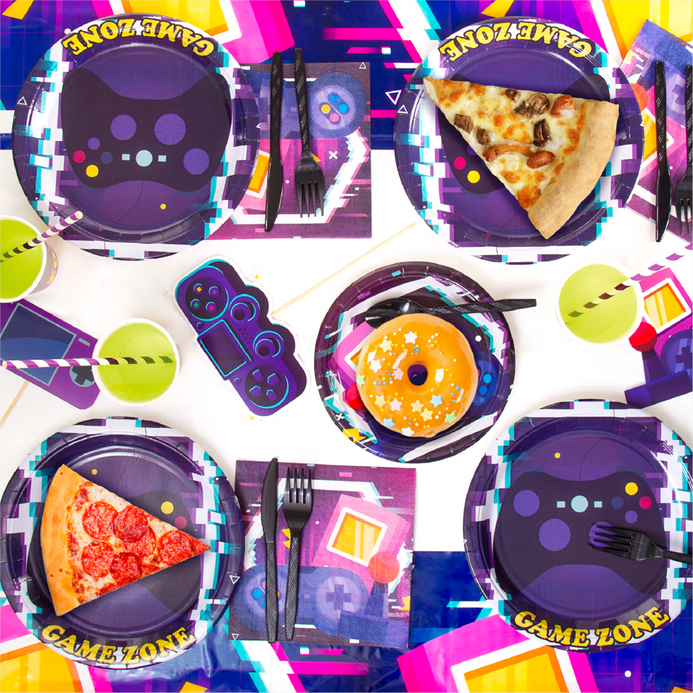 - GET INTO THE GAME ZONE: Get the squad together to celebrate your Gamers next birthday! Bright and colorful with classic gamer graphics that will make for an unforgettable celebration.