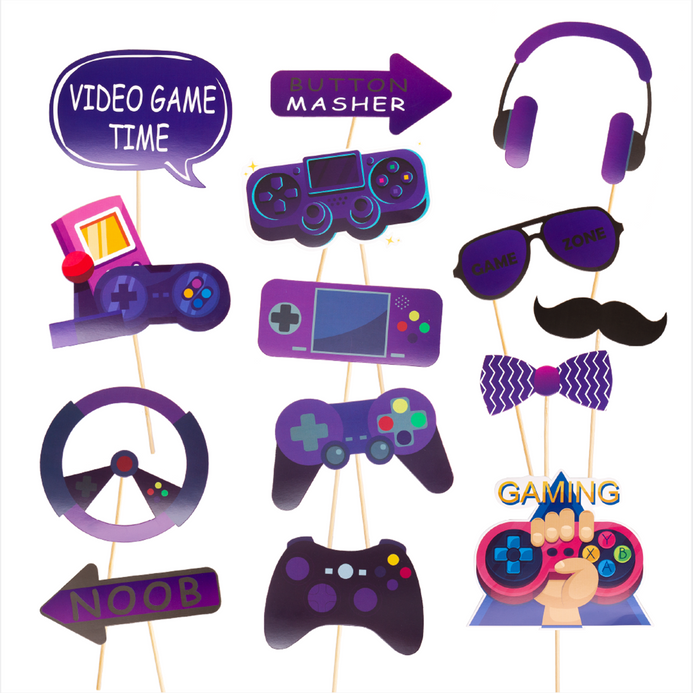 Over a dozen fun and game themed photo props for a memorable party! Featuring classic styled game controllers, gamer quotes and hilarious accessories for the entire squad!