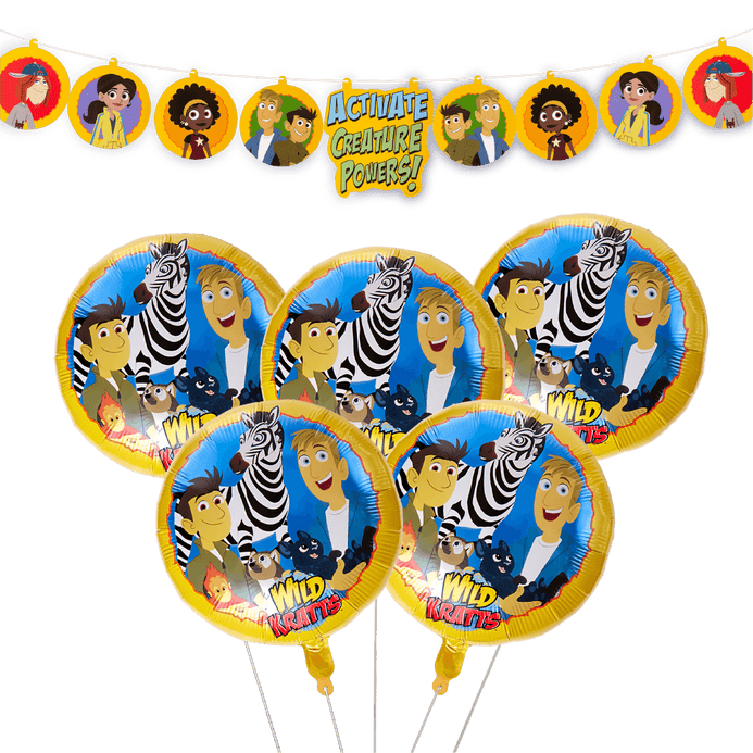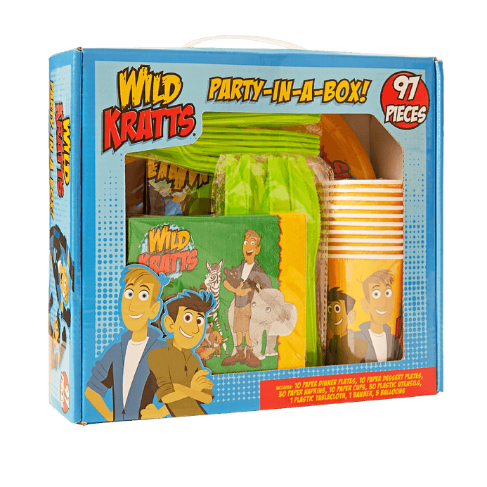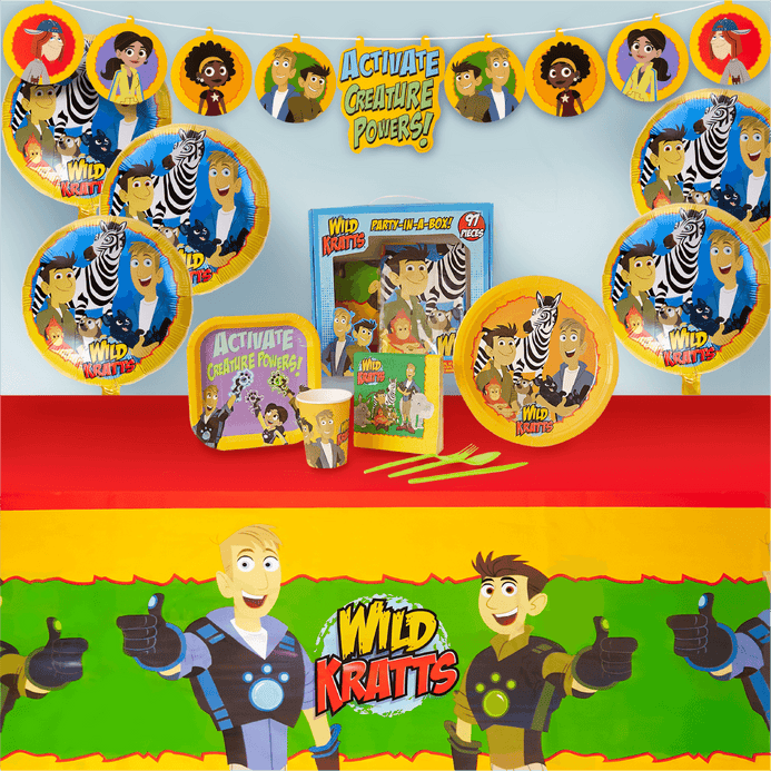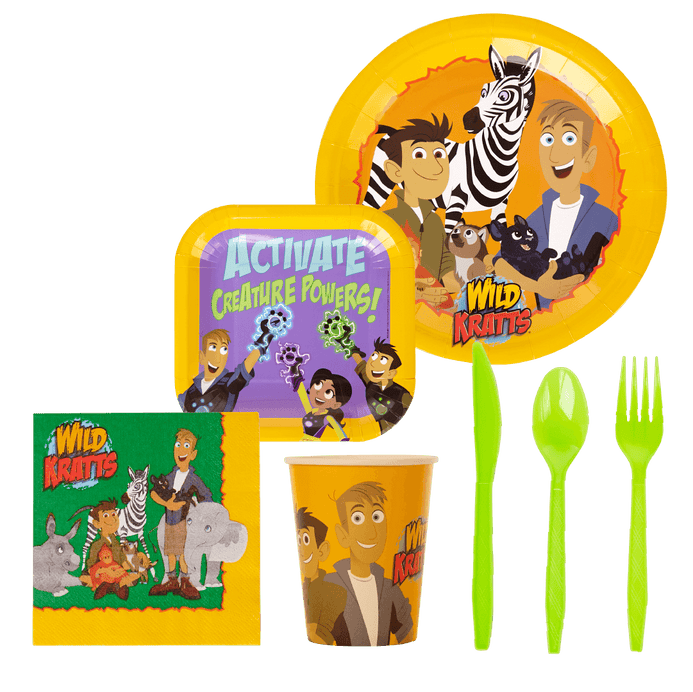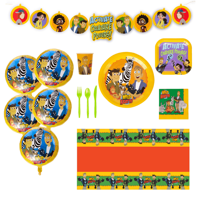 Complete Wild Kratts Party Kit: Host the ultimate Wild Kratts-themed birthday bash with a comprehensive party kit that includes a 5-foot banner, 10 each of 9-inch and 7-inch paper plates, 10 paper cups, 30 napkins, 3 18-inch balloons, and a set of 10 forks, spoons, and utensils.