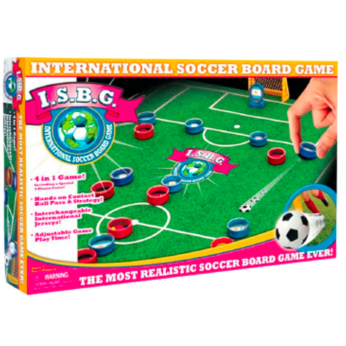 Enjoy the unique features of this game, no playing cards or dice needed. Playing requires technique and strategy. With your choice of interchangeable play piece jerseys you can choose your favorite world cup team. Jerseys come with the country name and number of real life soccer stars. You set the game time, overtime if need, and if penalty shoot out how many shots are taken. You will quickly find yourself immersed in the realistic action of the game. What makes the game appealing? Get involved, be strategic, no dice or cards, strictly ball pass on contact and strategy. Interchangeable jerseys for play pieces, you choose your favorite world cup teams. Set your own time for game play, overtime, or penalty shootouts as needed. Four types of game play in one.