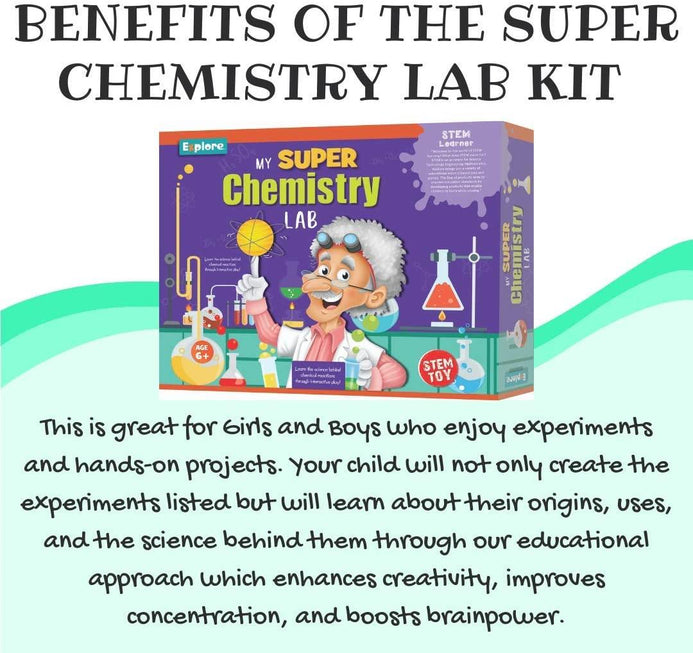 • DESIGNED BY EXPERTS: It is designed by science and lab experts. It is completely safe and non-toxic. My Super chemistry lab is a great child educational toy that promotes STEM learning, and is safe for kids, ages 7 & up.