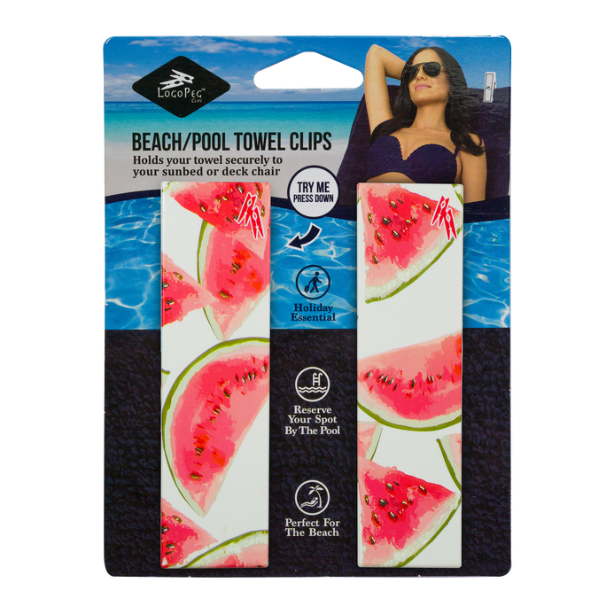Stops your towel blowing in the breeze, slipping around or falling on the floor. Oversized clips are easy to use and simple to carry. Reversible, with stunning designs on both sides. Buy multiple sets for the family, all matching...or all different! Extremely strong. Use @ home or vacay. No more falling, uncomfortable towels when relaxing. Avoid towels blowing in the sand when you take a dip in the ocean.Keeps your beach bags shut. Very smooth, premium moulded design with no sharp edges, avoids accidental injuries. Wide opening, will fit over the frame or your mattress.... guaranteed to hold your towel secure. Once you’ve used them, you will wonder how you ever managed before! Take on every vacation.Great for camping, use as strong, giant laundry clips. Multiple styles avail to personalize your spot in the sun. Reserve your lounger with this travel essential. Easily identify your lounger on busy beaches. Designs for men, women, and children. Built to last, not just a throwaway after 1 vacay. Extremely solid. Gorgeous heat transfer prints that won’t fade in the sun after 1 use. Premium quality.Each clip is 11cm long * 3cm wide. Multiple styles available to suit your mood each day and will become your travel essential. Items come sealed in box packaging (retail only, not paw/baby) perfect to keep your clips together. Easily fit in your beach bag. No novelty shapes...just premium quality beach towel clips, made to last. Great for picnics/camping. So many uses at home. Family vacay??? Everyone can have matching clips