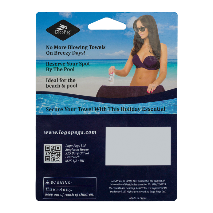- LogoPeg Can also hold your T-shirt’s, beach hats/bags etc. to the back of your lounger. Keeps your T-shirt’s dry. Multiple other uses at home, use them to keep opened packets shut, giant laundry pegs for heavy items.
