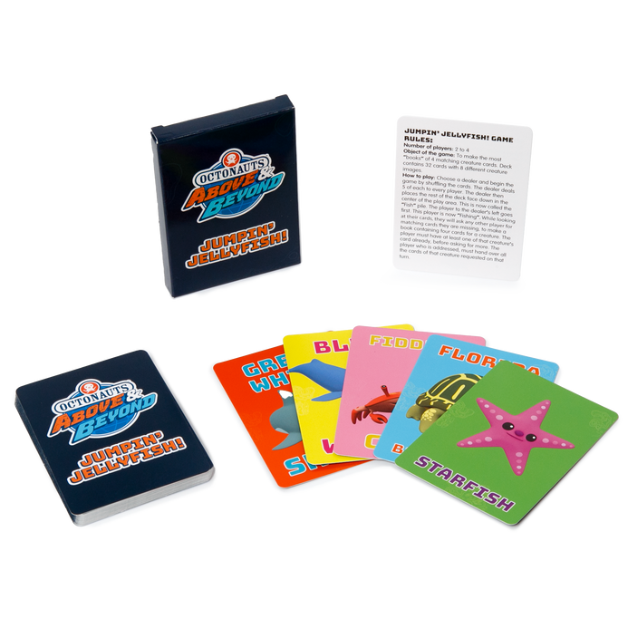 - THREE CARD GAME PACK - This three-pack includes Flappity Flippers, Jumpin’ Jellyfish and Explore! Rescue! Protect! Kids Card Games featuring all your favourite Octonaut characters! Sturdy, Glossy Cards that are made with durable thick card stock and just the right size for children’s hands making them easy to hold and play.