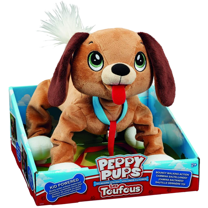 Peppy Pups is the soft and cuddly friend your child has been looking for, without the responsibility or commitment of a regular puppy! this Walking dog toy has pep and bounce in his step wherever your child decides to walk him, making him a lively, enthusiastic companion. Let your little one use the leash so he can walk-along in the park, on the sidewalk, or even in the house. With a snuggly coat, peppy pup will be easy to love and cuddle, just like a real puppy. This little stuffed toy features a cheerful facial expression. Peppy pup will be your child's best friend.