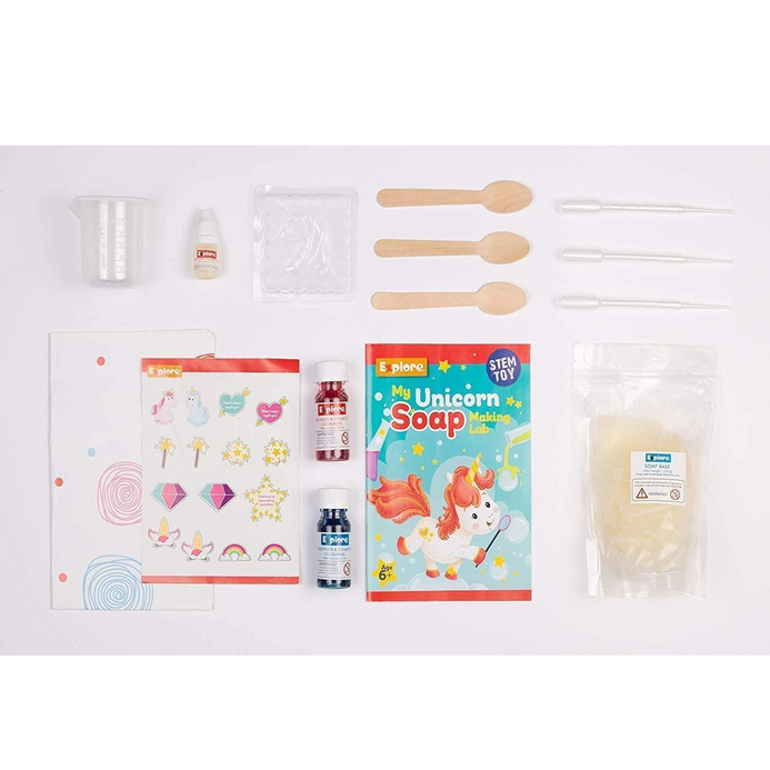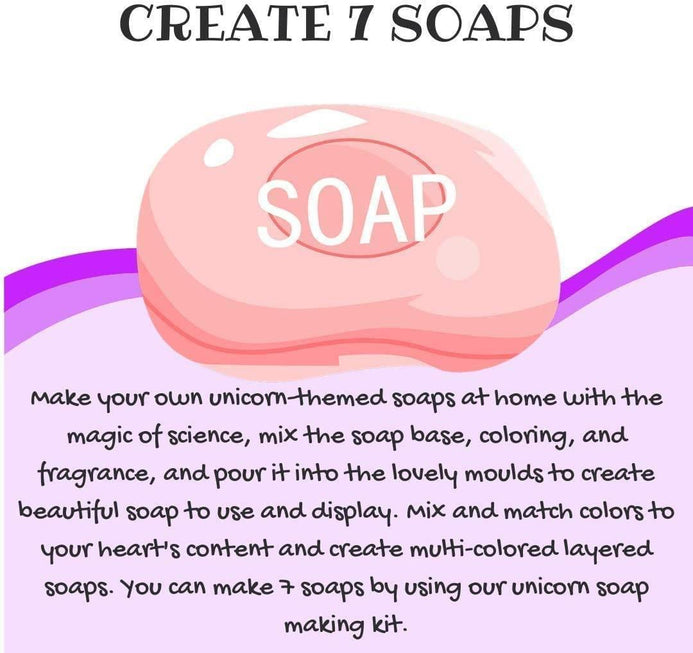 - CREATE 7 SOAPS: Get ready for a magical experience in soap making! With My Unicorn Soap Making Lab brought to you by Explore, learn to make aquatic-themed soaps in different scents. You can create 7 soaps with this kit. Once you are done, enjoy using your own homemade soap that you created with the knowledge and magic of science.
