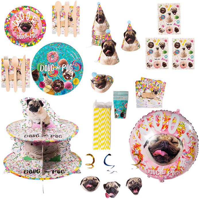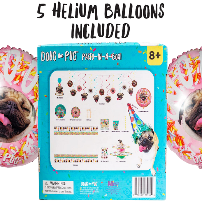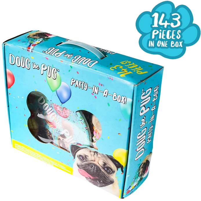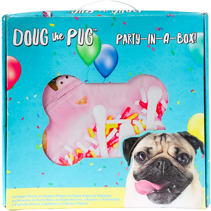 - EASY TO CARRY: Doug The Pug Party In A Box is lightweight and has a handle, making it easy to bring the party anywhere!
