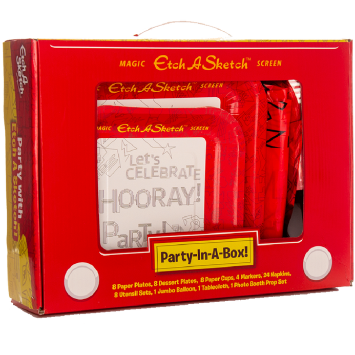 - OFFICIAL ETCH-A-SKETCH PARTY-IN-A-BOX! Everything you need to get your party started featuring the classic Etch-A-Sketch motif! Perfect for any celebration for ages 3 & up! High Quality party decorations and party supplies all conveniently packaged in one box.