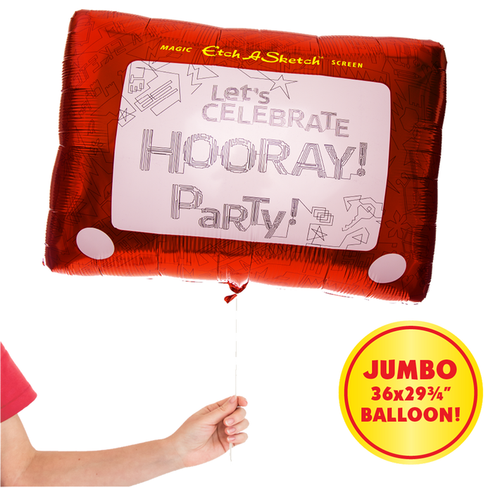 - JUMBO MYLAR BALLOON: Includes one beautiful Etch-A-Sketch themed jumbo balloon with foil surface. Measures 36 x 29.75” fully inflated. Can be filled with regular air or helium.
