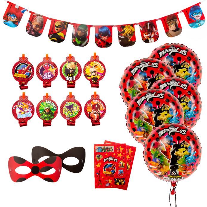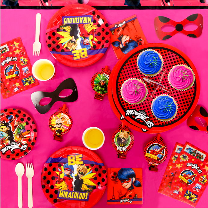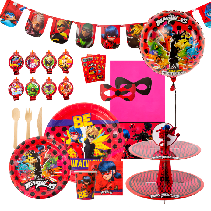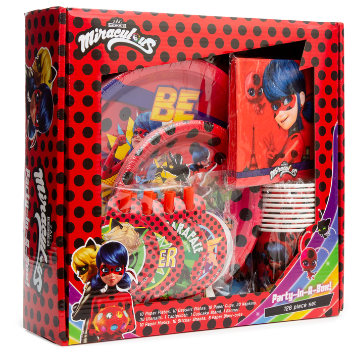 - OFFICIAL MIRACULOUS PARTY-IN-A-BOX - Join Miraculous and her friends in a super heroic celebration with this Miraculous themed party kit! Includes everything to get the adventure party started!