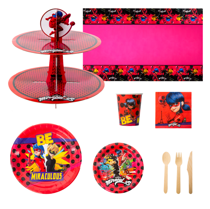 - FOR ANY OCCASION - Miraculous Party-In-A-Box is perfect for birthdays, holidays, graduations, and more! Quality made paper products, easy to set up decorations, wood utensils and party accessories.