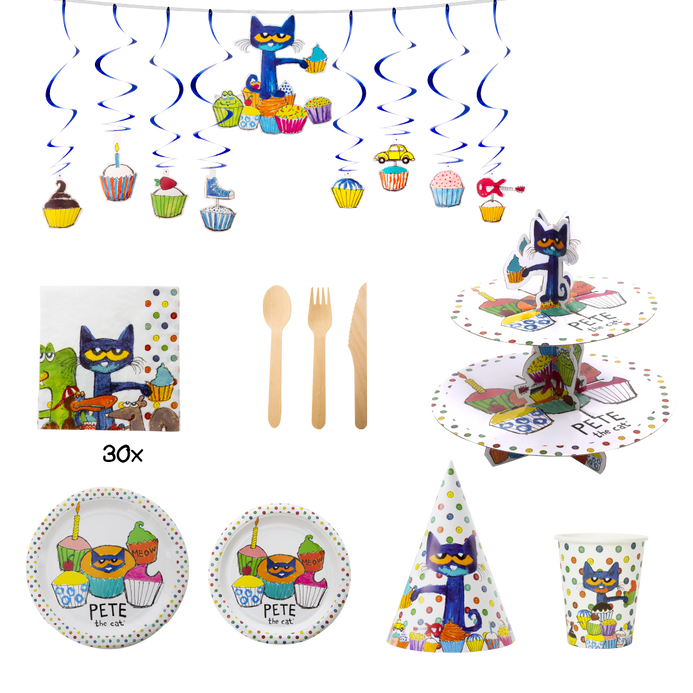 - FOR ANY OCCASION - The Pete The Cat Party-In-A-Box is perfect for birthdays, holidays, graduations, and more! Quality made paper products and wooden utensils.