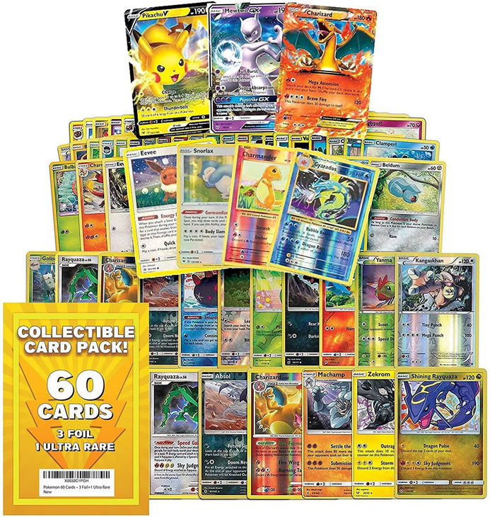 Pokemon TCG 60ct Pack Trading Card Game 3 Foil 1 Ultra Rare Assortment Mighty Mojo