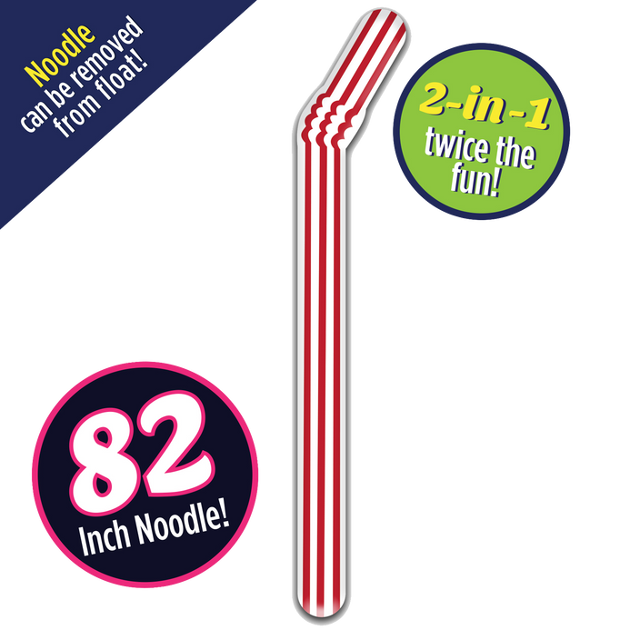 - Surprise! It’s a separate noodle to float on! Noodle slides in and out of center chamber of float.