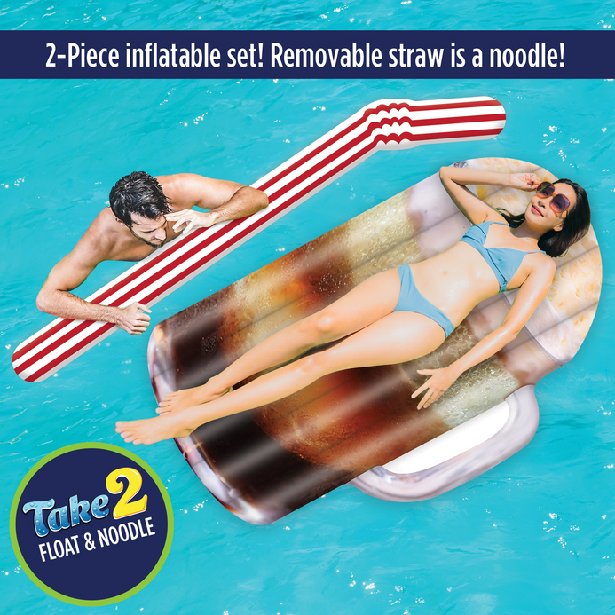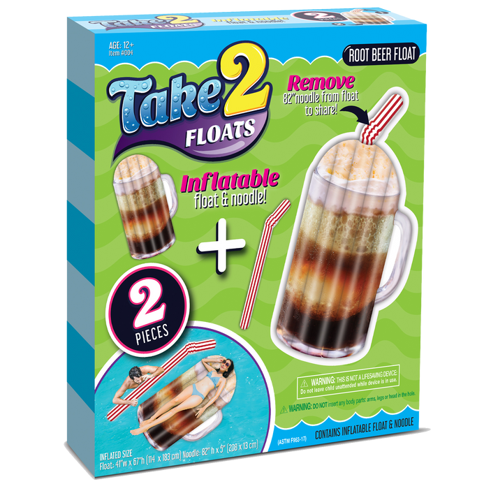 Take 2 Floats are the HOTTEST inflatable novelty water float and noodle combination to hit the water! When it’s time to cool off, grab one of the 4 beautifully printed Take2Floats, in all of your favorite yummy summer staples! Lay on top of the float to catch some sun or SURPRISE! You can pull out the center noodle to float along the side of a friend! The best 2 in 1 float combo to use alone or to share!