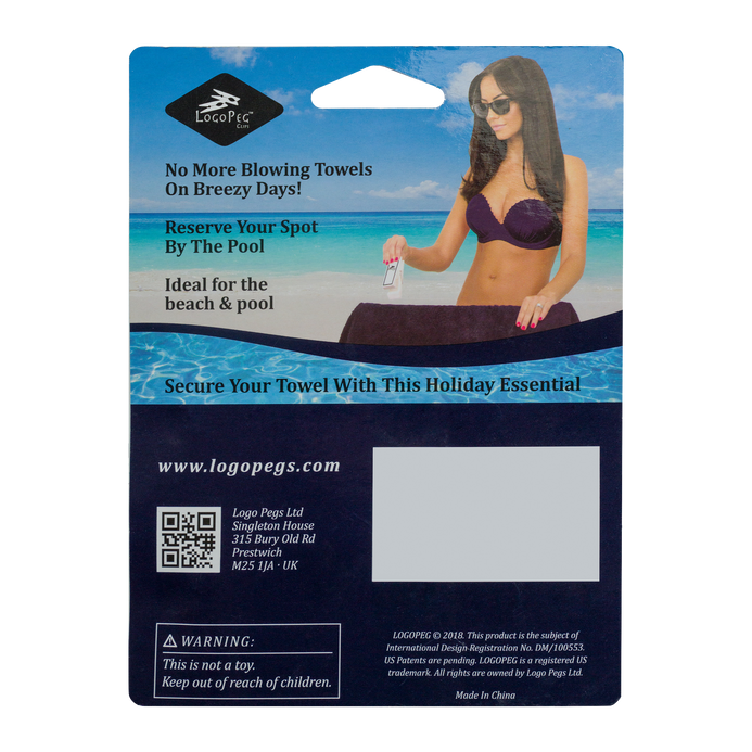- LogoPeg Can also hold your T-shirt’s, beach hats/bags etc. to the back of your lounger. Keeps your T-shirt’s dry. Multiple other uses at home, use them to keep opened packets shut, giant laundry pegs for heavy items.