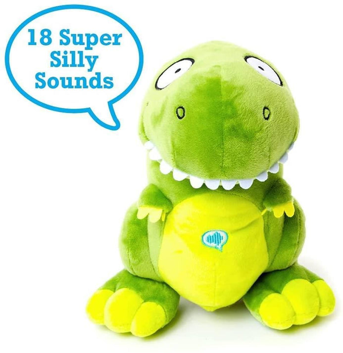SILLY SOUNDS DINO! Introducing Silly Sounds Dino! He is on a mission to make you laugh, giggle and smile! Squeeze his belly and he will make over 20 extremely silly sounds! From burping to roaring to farting!