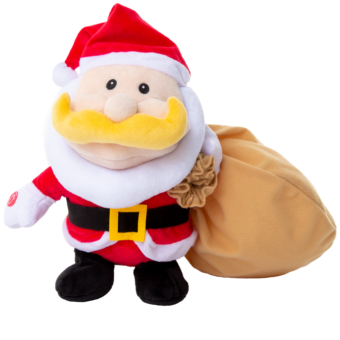 Make this holiday extra special with an adorable recordable Santa with a gift bag! Santa will record your special message and play it back on request. Plus his sack is designed to hold presents for those on the good list! A unique gift that gives a personalized touch to holiday giving! Soft plush Santa, Gift Bag, and Audio Recording that will be cherished and treasured for years to come!
