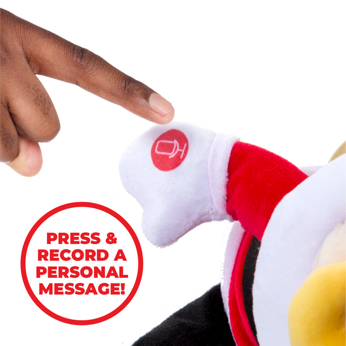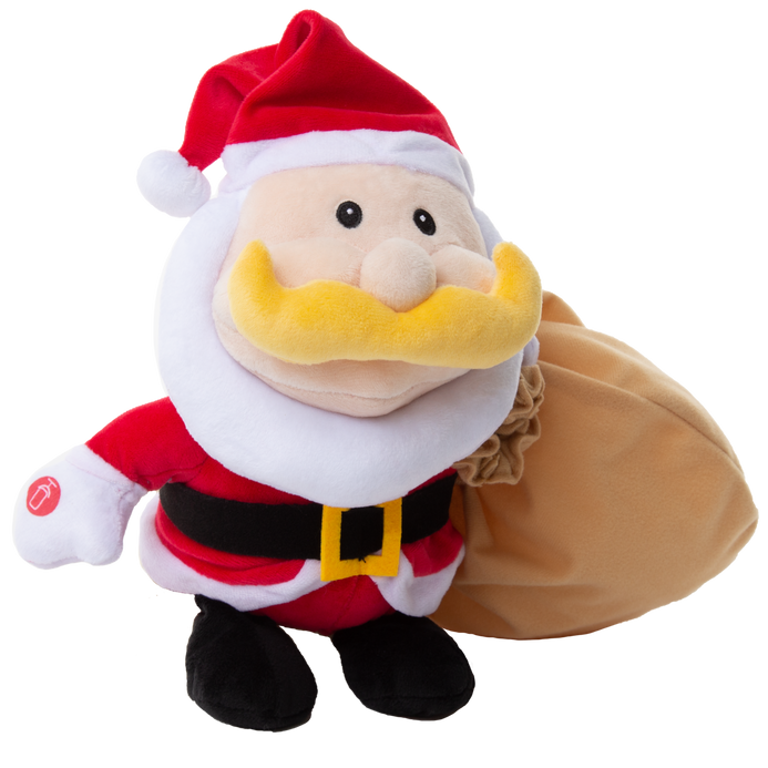 Make this holiday extra special with an adorable recordable Santa with a gift bag! Santa will record your special message and play it back on request. Plus his sack is designed to hold presents for those on the good list! A unique gift that gives a personalized touch to holiday giving! Soft plush Santa, Gift Bag, and Audio Recording that will be cherished and treasured for years to come!