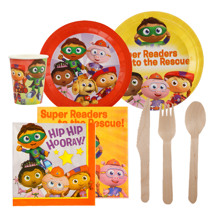 • FOR ANY OCCASION - Super Why! Party-In-A-Box is perfect for birthdays, holidays, graduations, and more! Quality-made paper products, easy-to-set-up decorations, wood cutlery and party accessories.